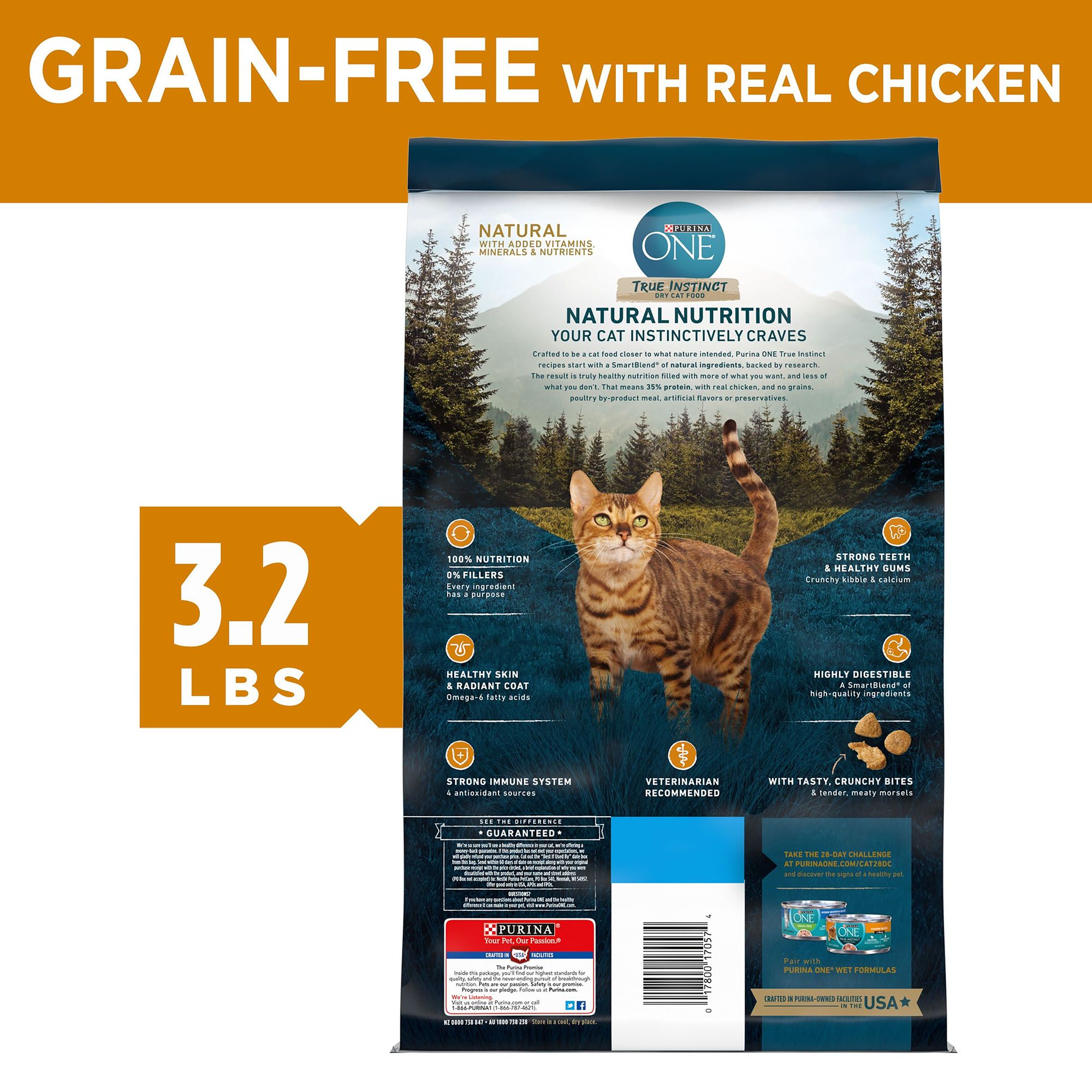 Purina one true instinct natural grain free dry cat food to support your cat s lifelong body health.